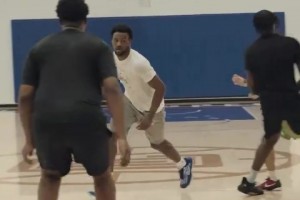 说话的是老詹吗?布朗尼与今年的10号秀马鲁阿奇一起训练~