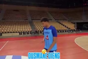 小号文班?吉昂玩中圈投篮进了四个!