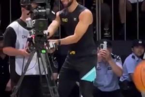 我们小学僧就是爱玩~库里比赛期间强行把玩摄像师的机器😂