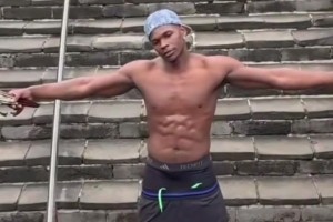 经典西海岸穿搭!华子中国行登长城 裤子拉到内裤都露出来🤣