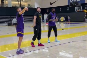 要参加三分大赛?🤣詹姆斯/东契奇/里夫斯站一排比拼三分