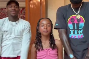 有模有样😂詹姆斯带女儿现身网红kai直播间秀舞蹈