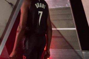 啧啧啧,性感黑丝!杜兰特这纤细小腿实在迷人啊😍