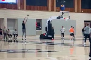和篮筐高度一比,文班这身高太恐怖了😯这孩子还在猛练三分