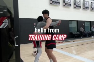 塞布尔上来就熊抱杨瀚森😆开拓者众将精神饱满迎接训练营
