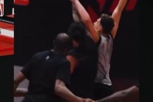 以牙还牙!昨天海王亚当斯被申京隔扣,今天立刻隔扣了回来!