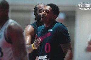 干得漂亮!哈登和比尔训练中击掌,并拍拍后者的胸脯