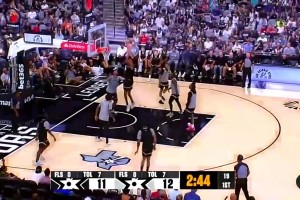 不是哥们,你奥尼尔??文班后场运球一条龙,创开队友炸裂暴扣!