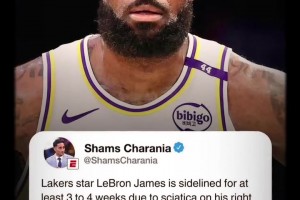 💥詹姆斯坐骨神经痛将缺席3-4周!22场揭幕战全勤神话终结