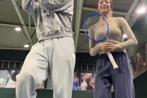 付豪跟妻子在网球场跳双人舞:接王教练下课