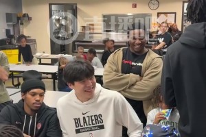 完全融入啦~杨瀚森参加开拓者社区活动,笑得很开心啊😄