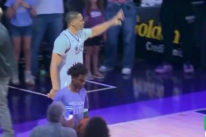 威少现身国王球迷日,心情看起来相当不错哦