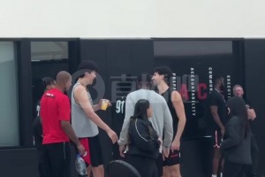 准备迎接揭幕战!杨瀚森队内训练拿着一杯饮料,和队友有说有笑