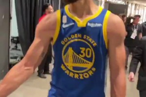开门红!库里赛后球员通道念叨:第一场拿下,还有81场!