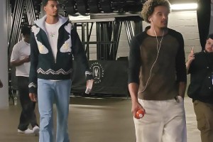 状元大对决!文班亚马赛前抵达球馆!感觉又长高了!