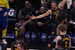 美国球迷打趣:我整个赛季都没见过斯蒂芬这么开心