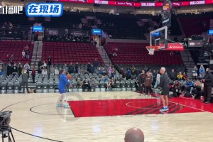 名场面:啦啦队在场边观看,詹姆斯热身时连续冲刺全场上篮!