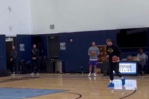 行动不便也要支持队友!迪文岑佐今天现身球队赛前投篮训练