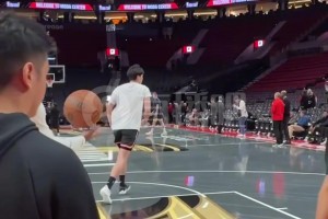 面对自己的偶像!杨瀚森练习篮下终结,远端的约基奇正在训练三分!