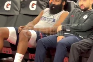 这球鞋配色如何?登哥赛前在板凳上瘫着发呆,很惬意啊~