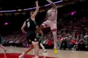 🤣笑死!杨瀚森大帽理查兹,结果被后者踢到了蛋蛋,下来一直捂着