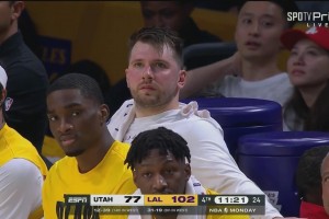 🤣我来了个这么强的队?!东契奇三节打卡,在板凳席上无聊发呆