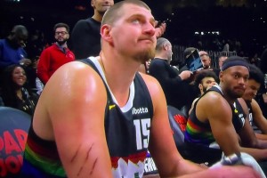触目惊心啊!约基奇胳膊上的三道血痕是谁挠的?下手真狠啊😨