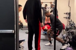 文化输出!杨瀚森在更衣室听八方来财~边上的翻译疯狂在撸铁🤣