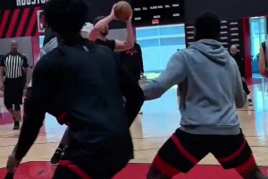 申京和阿门在训练中的默契配合!