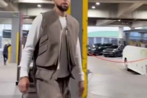 勇士客场开拓者,库里抵达球馆状态轻松👍