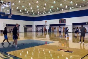 在聊什么?雷霆队训练:SGA穿圣诞配色鞋子训练,和普总聊天!