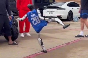 坏了赔钱不?欧文一把推倒机器人,结果机器人倒地瘫痪罢工🤣