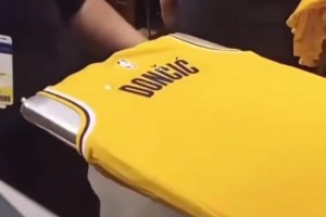 夸张!球迷大排场龙买东契奇湖人球衣,店家没有存货,现做现卖!