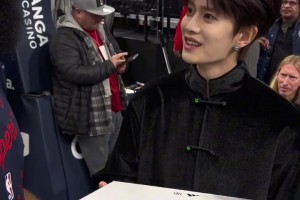 任嘉伦今日身穿唐装现场观战快船比赛,还与哈登互换礼物合影