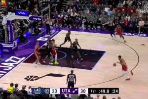 拿下快船生涯首记助攻!本-西蒙斯小手一抖助攻哈登飚进三分!
