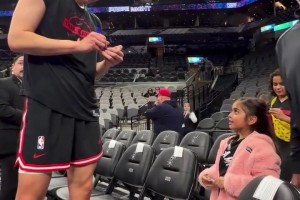 杨瀚森的小粉丝还挺多!杨瀚森昨日赛前给小球迷签名