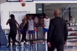 碾压局!76人队内单挑:恩比德满脸笑容错位单打!