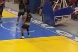 球场危险瞬间!男生抓框没想到篮筐倒下来了!千斤顶不想赔钱!