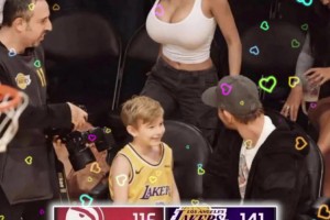 这个兄真喜啊!😍湖人上一场大胜老鹰,场边惊现一位丰满女郎