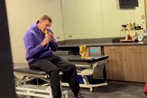 谁偷拍的🤣约基奇在更衣室里偷偷吃Taco~