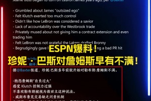一条比一条猛啊🔥ESPN曝出珍妮长期不满詹姆斯的具体原因!