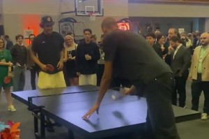 这高度有点难打吧🤣文班亚马和索汉PK乒乓球~