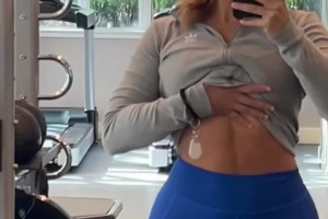登哥女友在健身房露出小腹自拍,这腹肌也不明显呀🙈