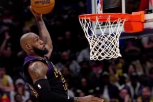 这是41岁老将的弹跳?🤯老詹昨日左手空接暴扣险些平框啊!