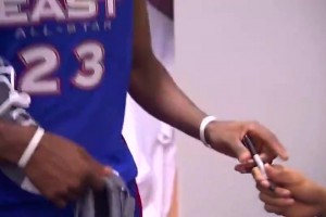 今天替补入选!老詹当年首进全明星时,让队友在鞋上签名留念