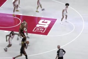 哇平筐了!文森特顺下抛传 库明加起飞蹦贼高单臂空接隔扣!