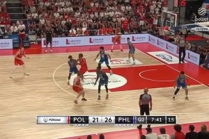 9号秀的天赋!索汉此前在波兰队热身赛上演原地拉杆暴扣!