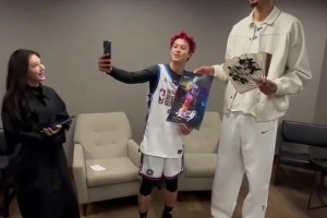 身高差距43公分!王鹤棣和文班亚马合影,美娜在一旁看着