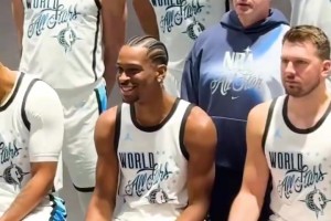 可惜受伤了不能打!SGA满面笑容参加全明星世界队定妆照拍摄~