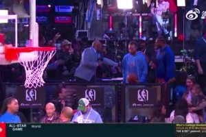 还得是你😎!库里在NBC现场嘉宾席 完成高难度超远投